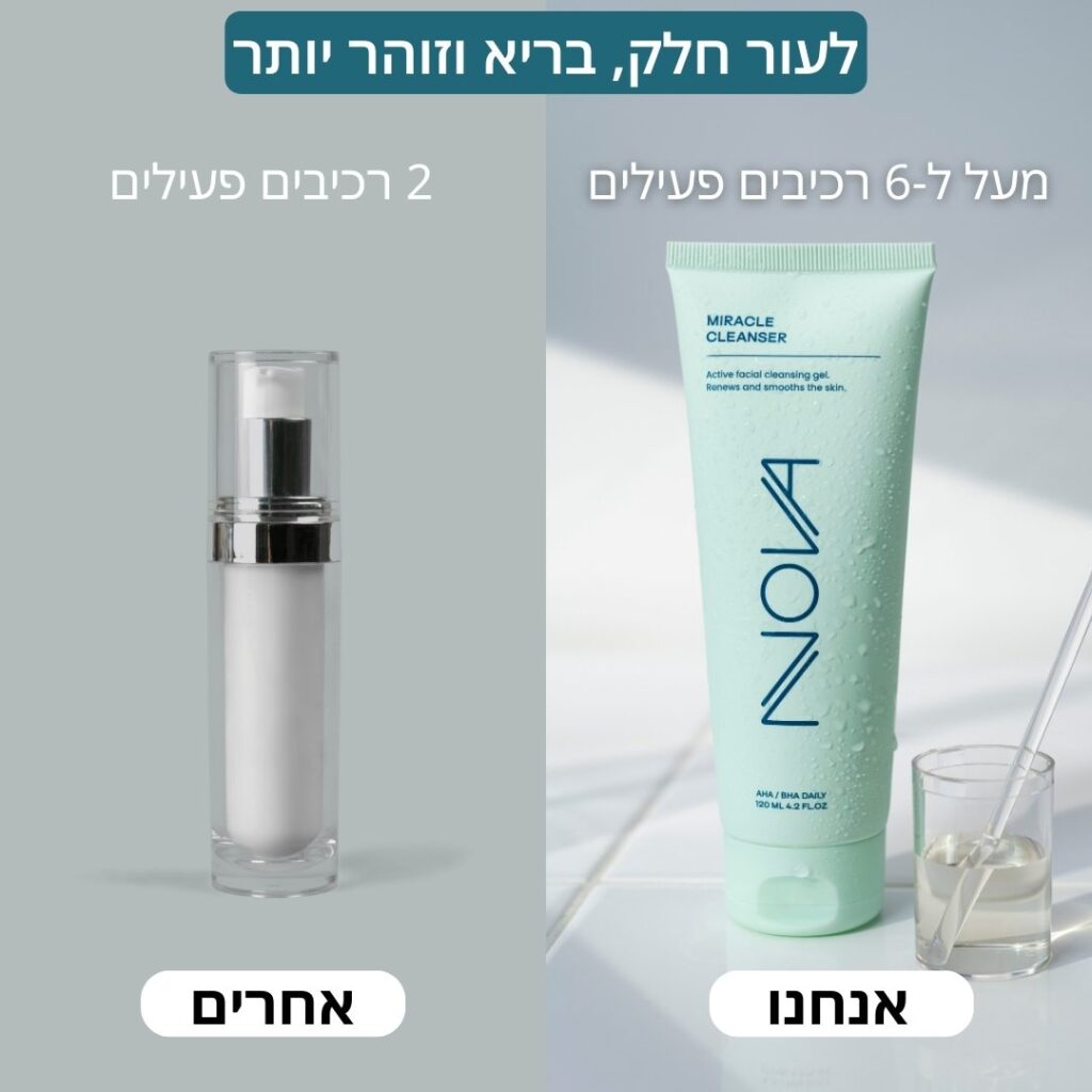 אז באמת אחרי שאני שוטפת עם הסבון הפנים של נובה אני מרגישה שהעור ממש נקי ולא יבש מכווץ כזה ולא מרגיש כמו זכוכית – מרגישה שהקרמים שלי נספגים ופועלים בצורה טובה יותר. הופתעתי לטובה